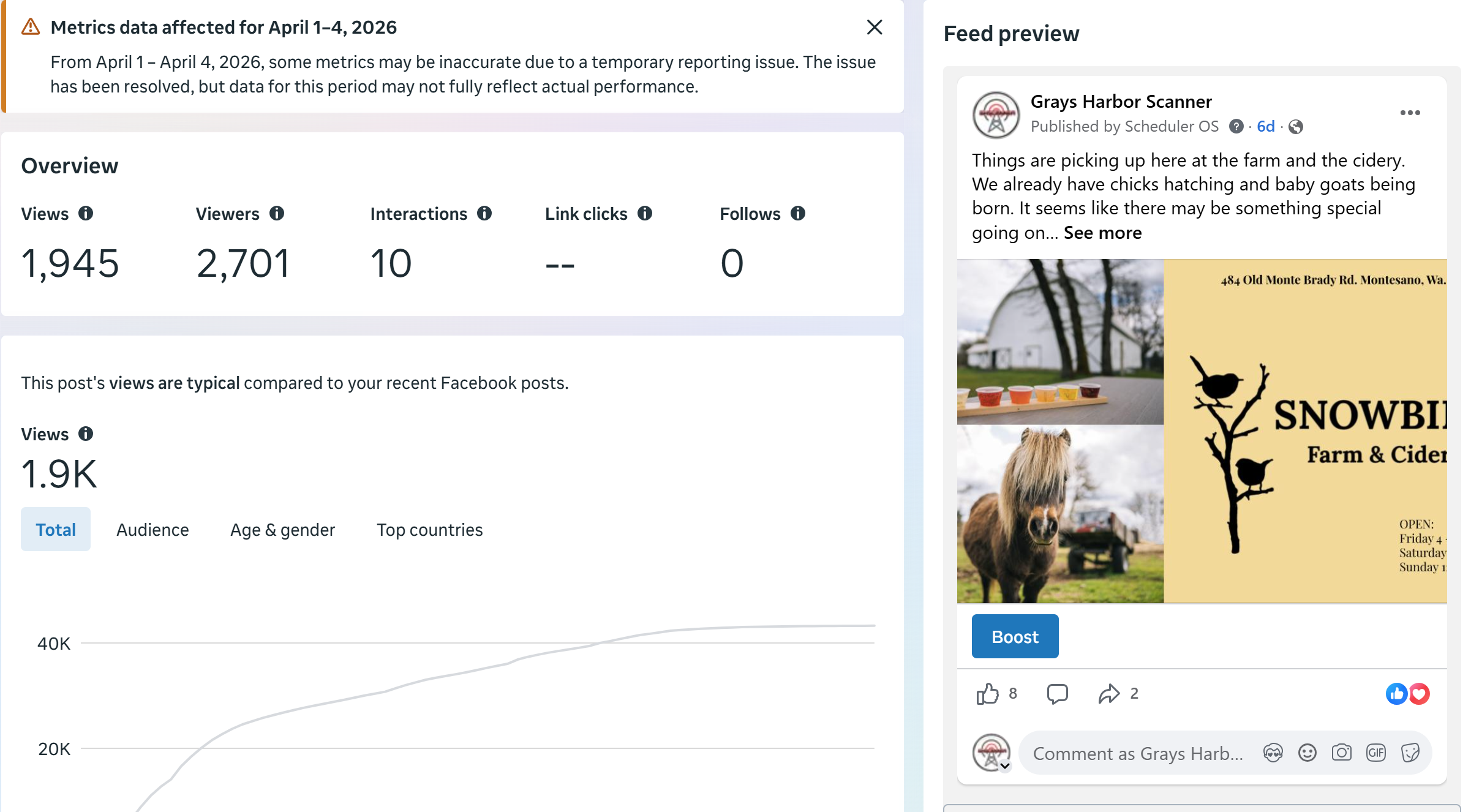 | Captured | Reach | Clicks | Reactions | Comments | Shares |