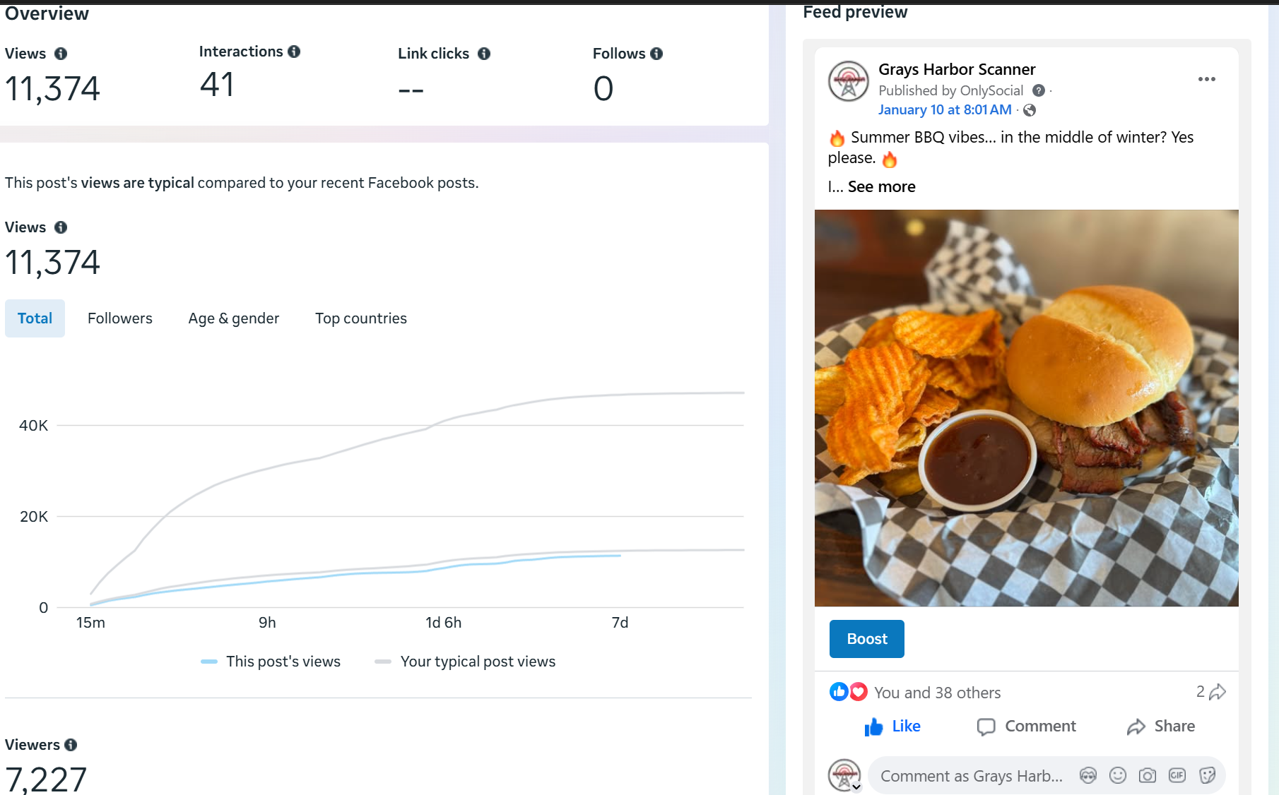 | Captured | Reach | Clicks | Reactions | Comments | Shares |