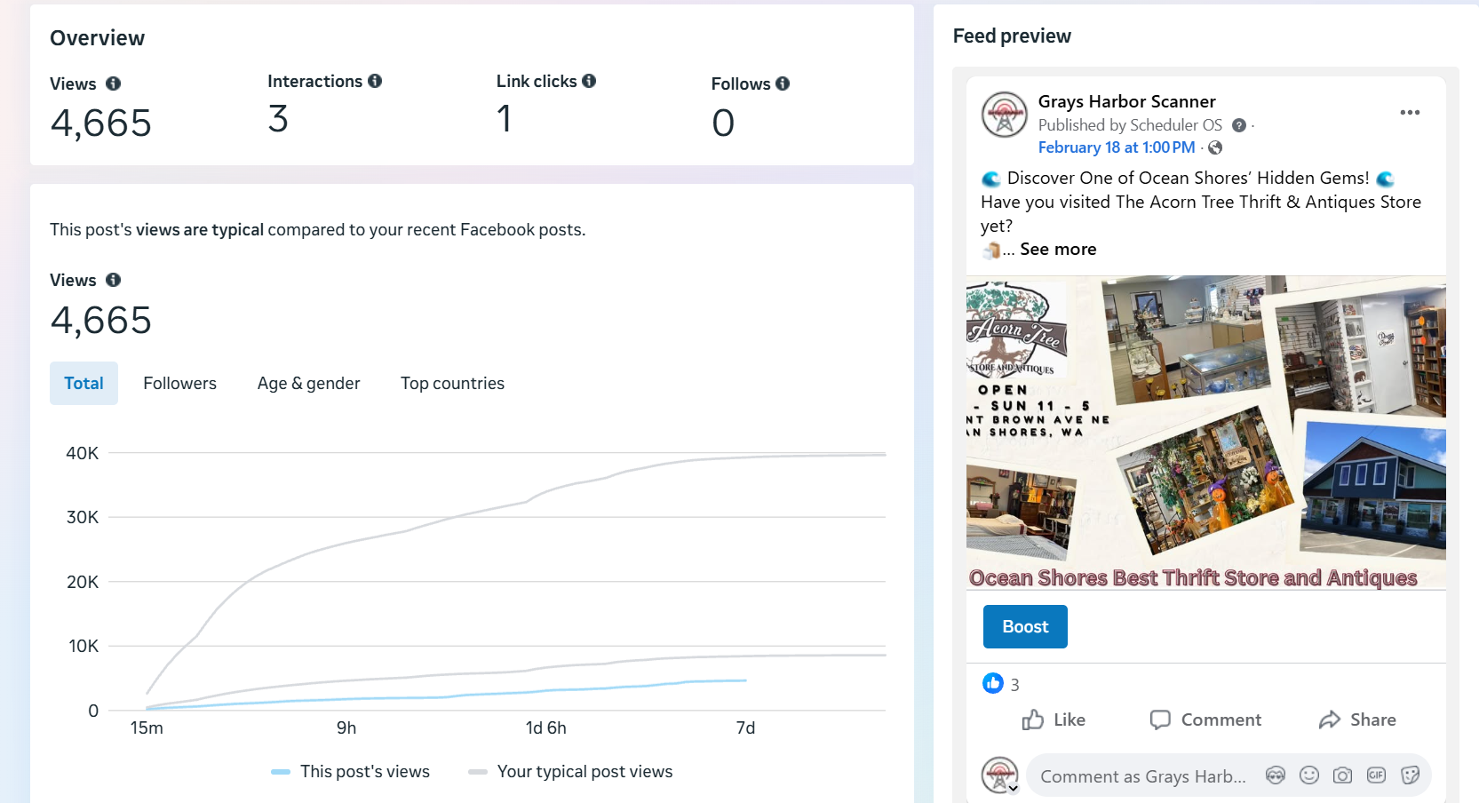 | Captured | Reach | Clicks | Reactions | Comments | Shares |