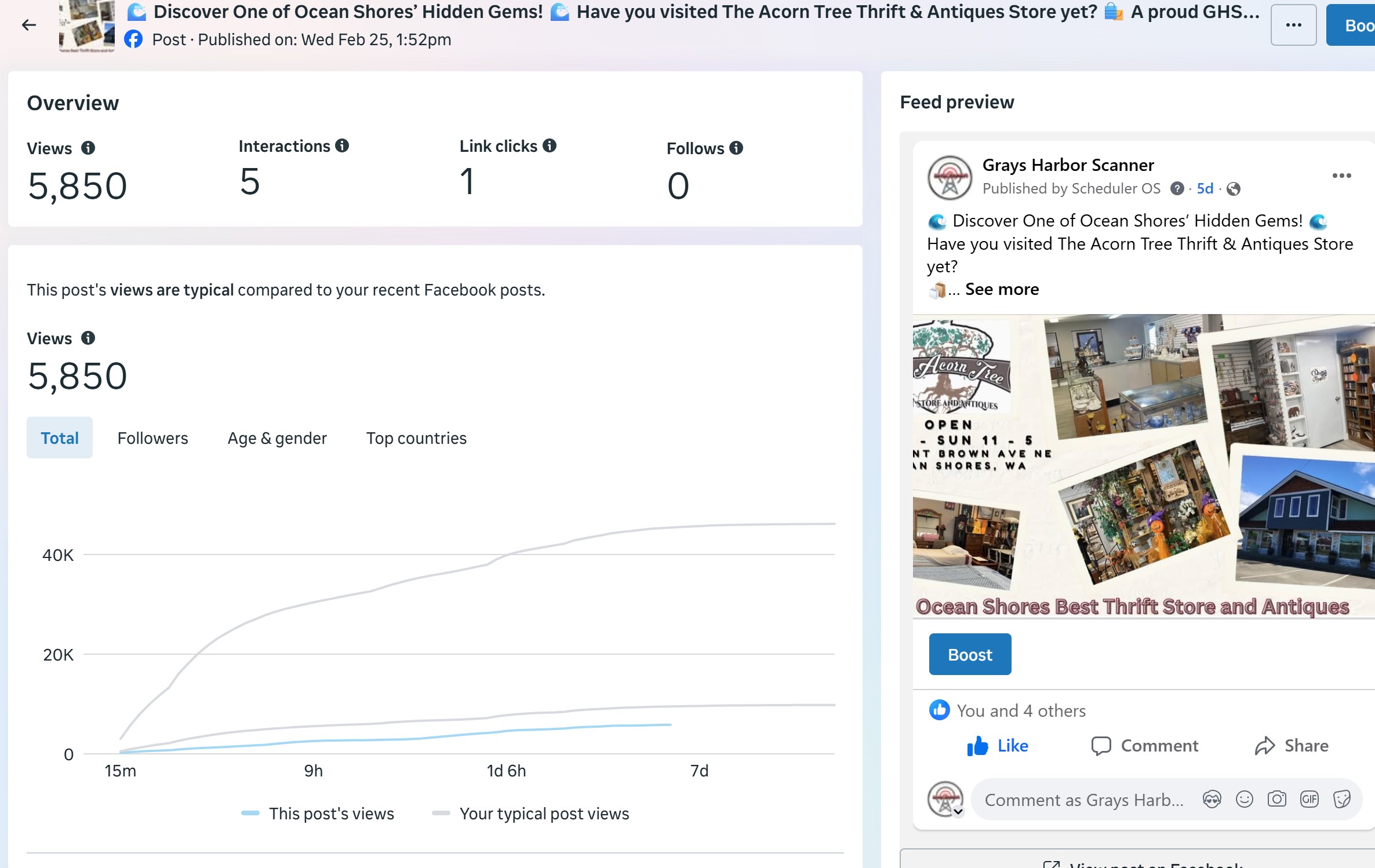 | Captured | Reach | Clicks | Reactions | Comments | Shares |