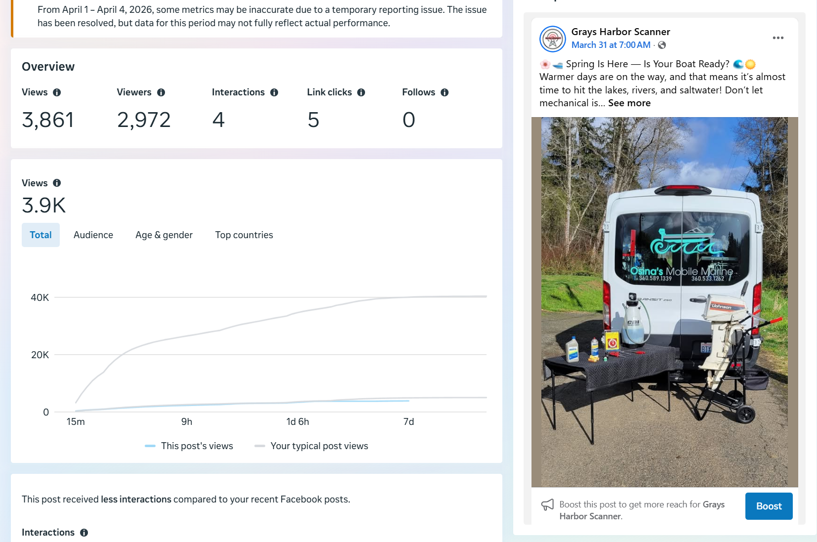 | Captured | Reach | Clicks | Reactions | Comments | Shares |