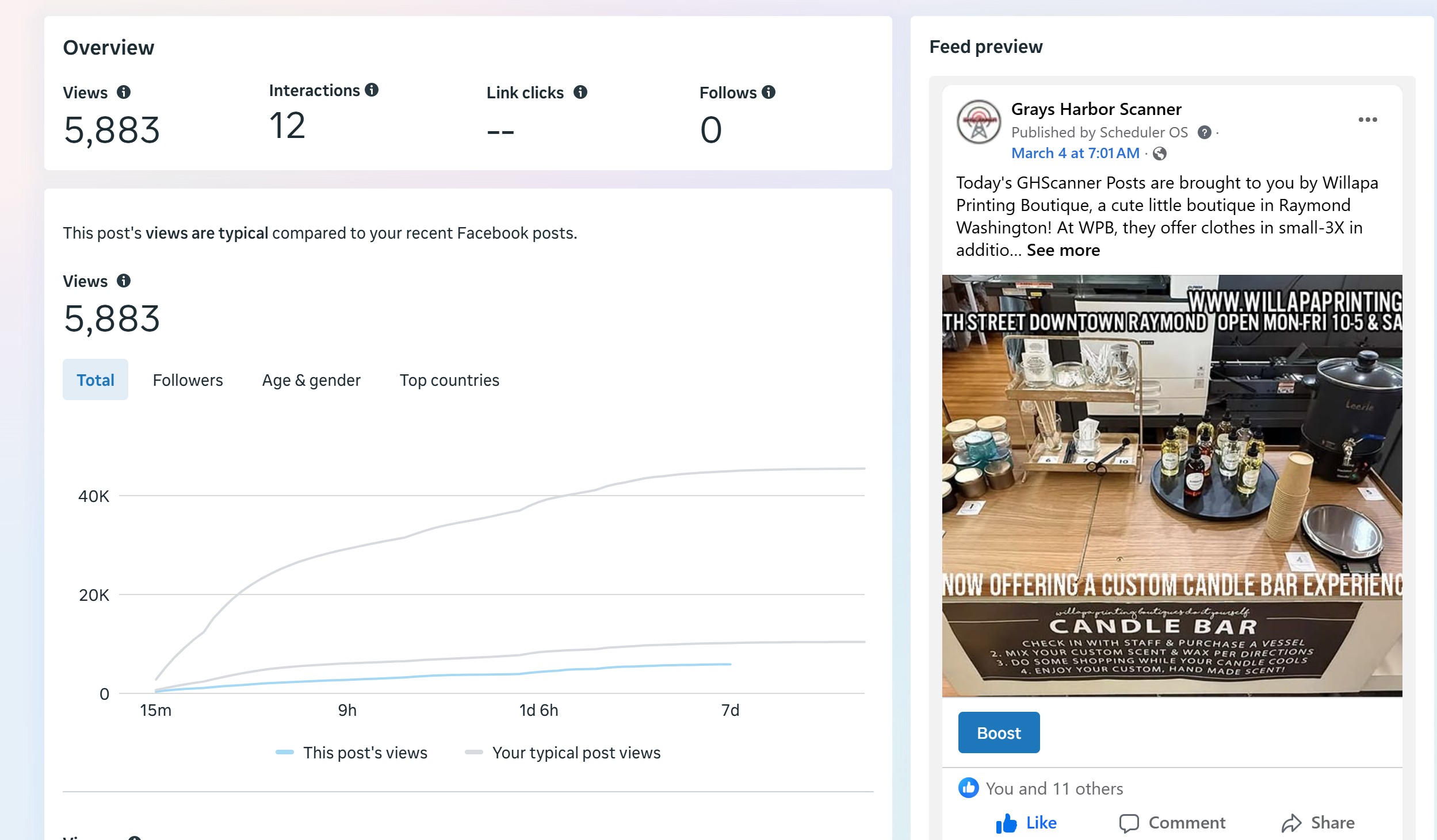 | Captured | Reach | Clicks | Reactions | Comments | Shares |
