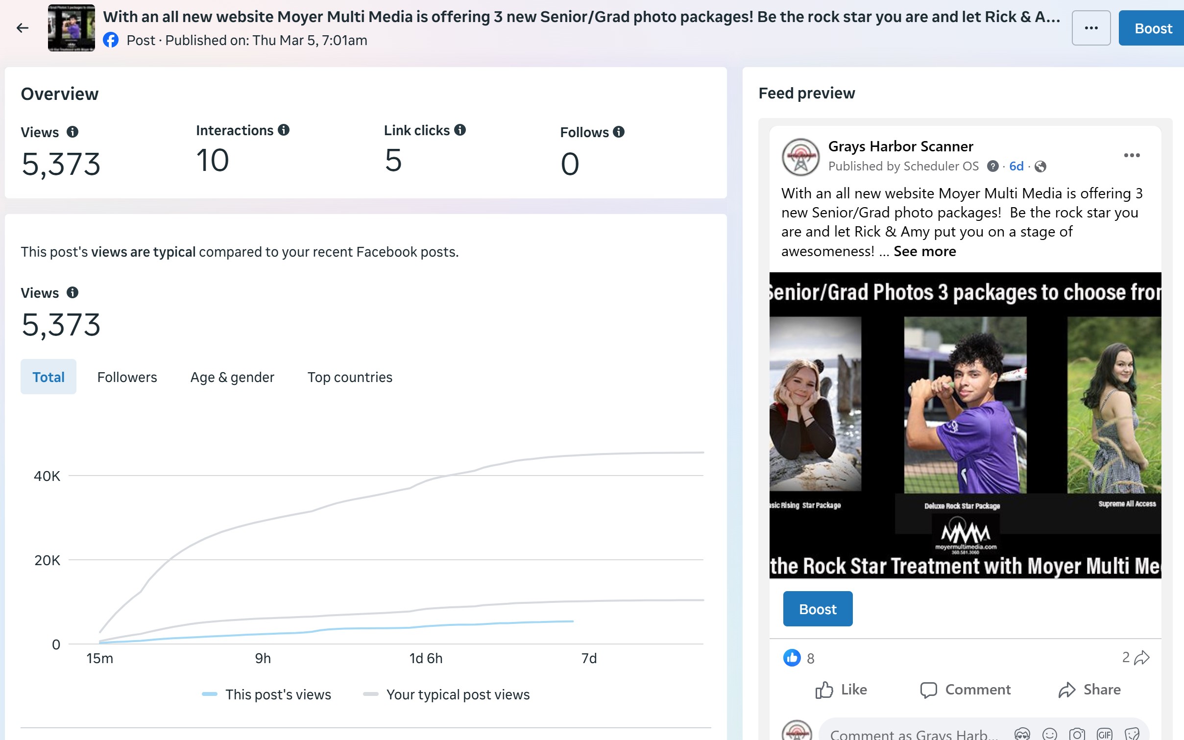 | Captured | Reach | Clicks | Reactions | Comments | Shares |
