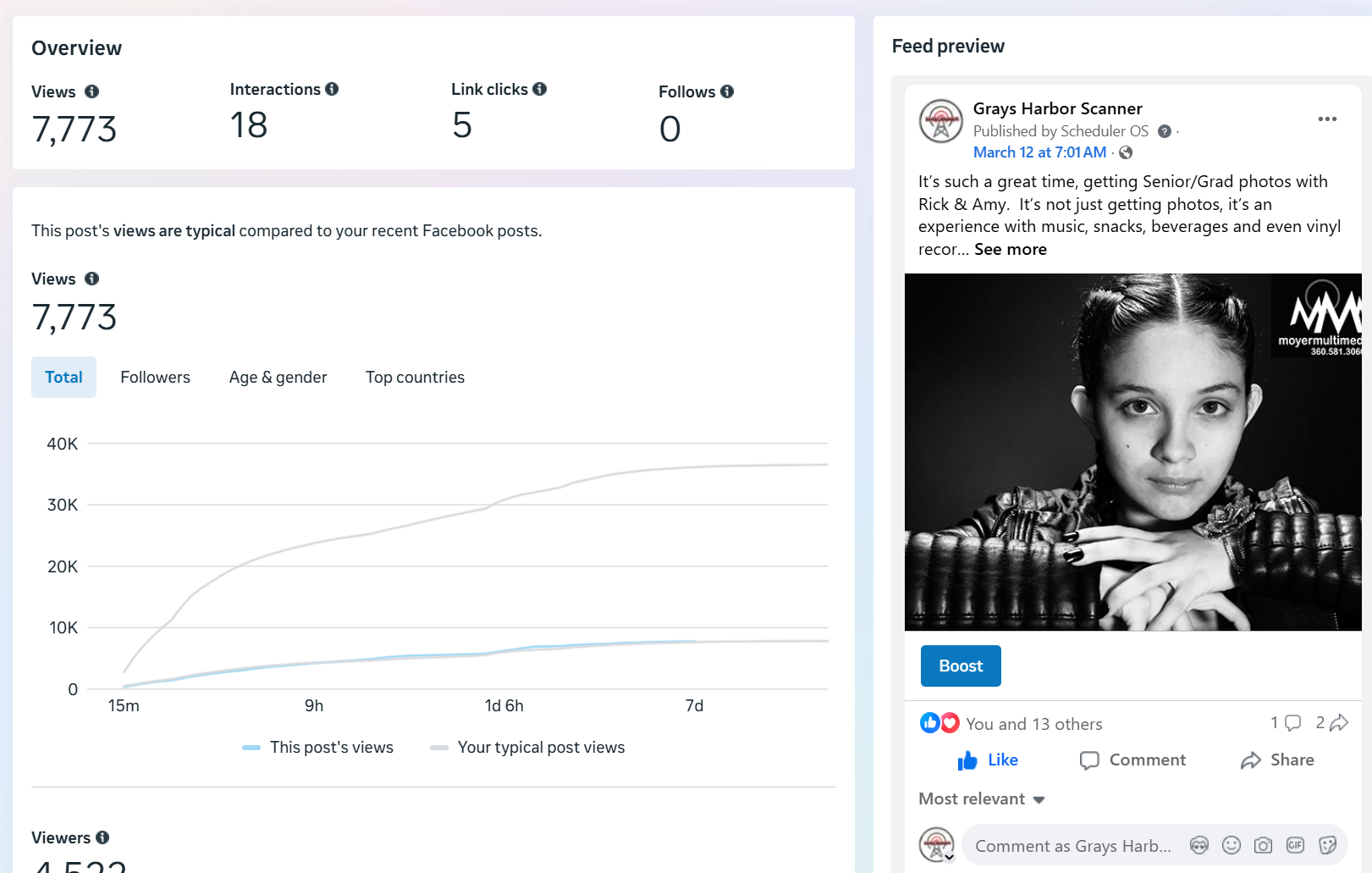 | Captured | Reach | Clicks | Reactions | Comments | Shares |
