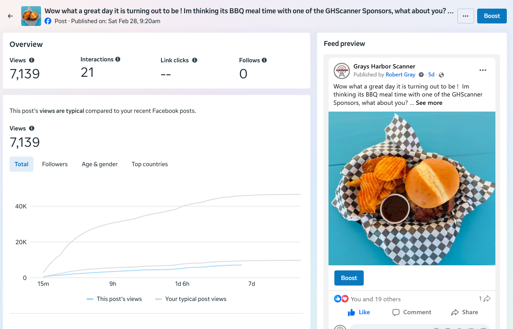 | Captured | Reach | Clicks | Reactions | Comments | Shares |