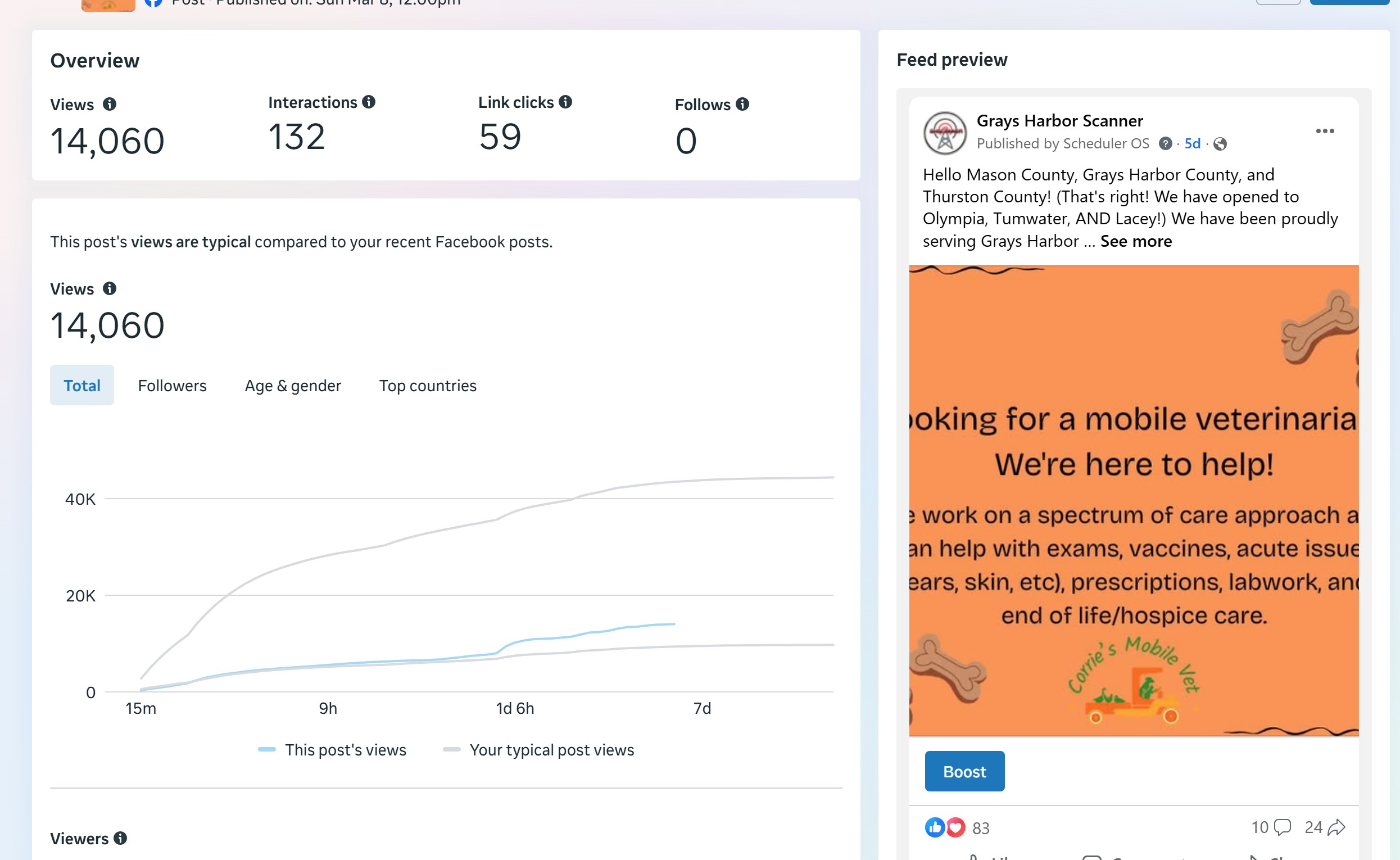 | Captured | Reach | Clicks | Reactions | Comments | Shares |
