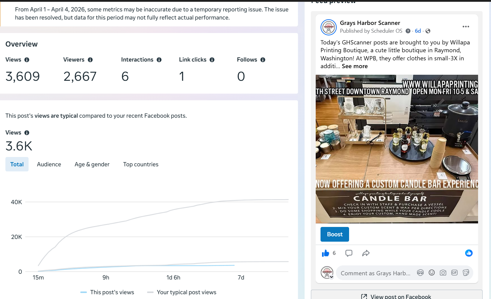 | Captured | Reach | Clicks | Reactions | Comments | Shares |