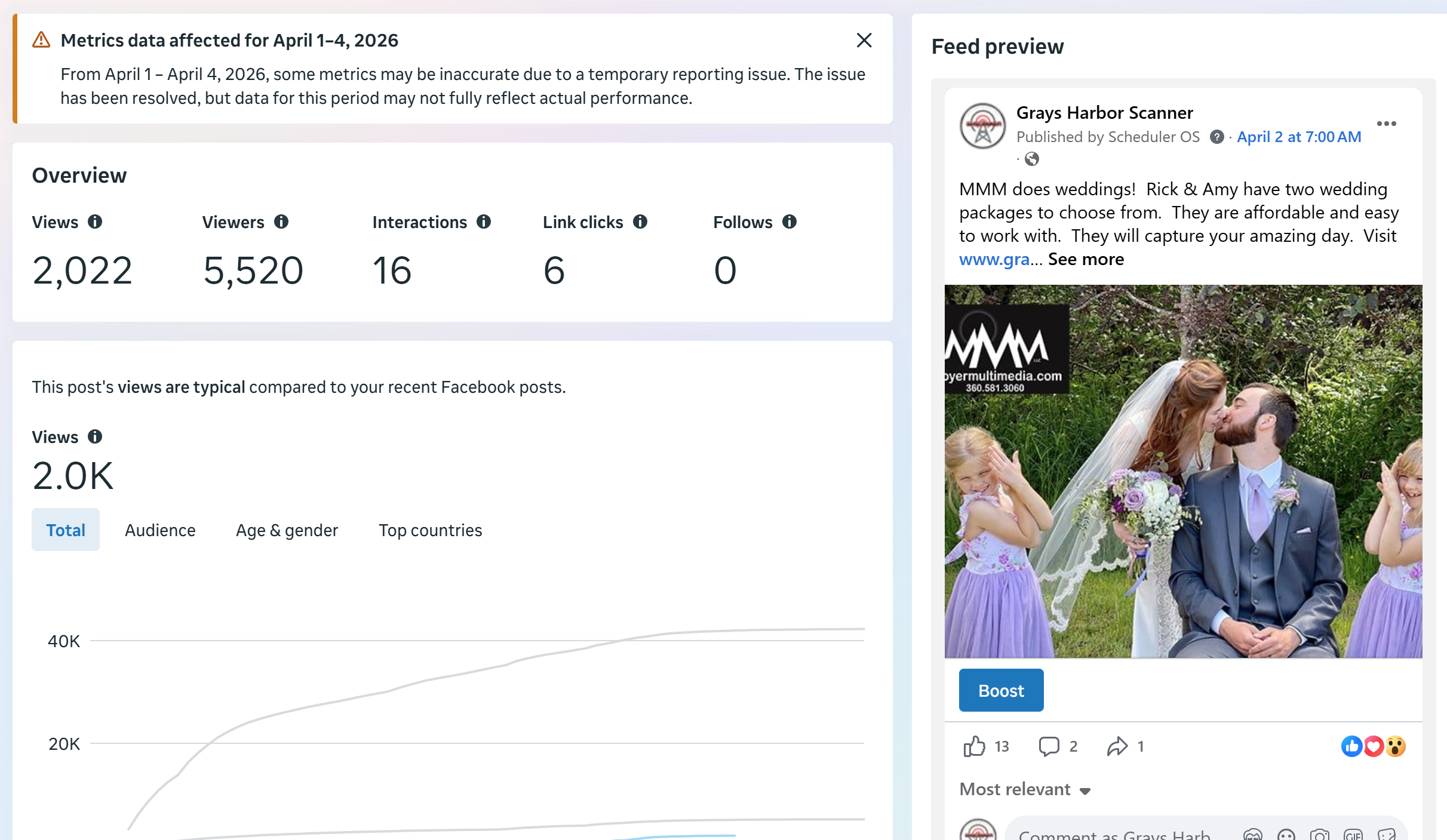 | Captured | Reach | Clicks | Reactions | Comments | Shares |