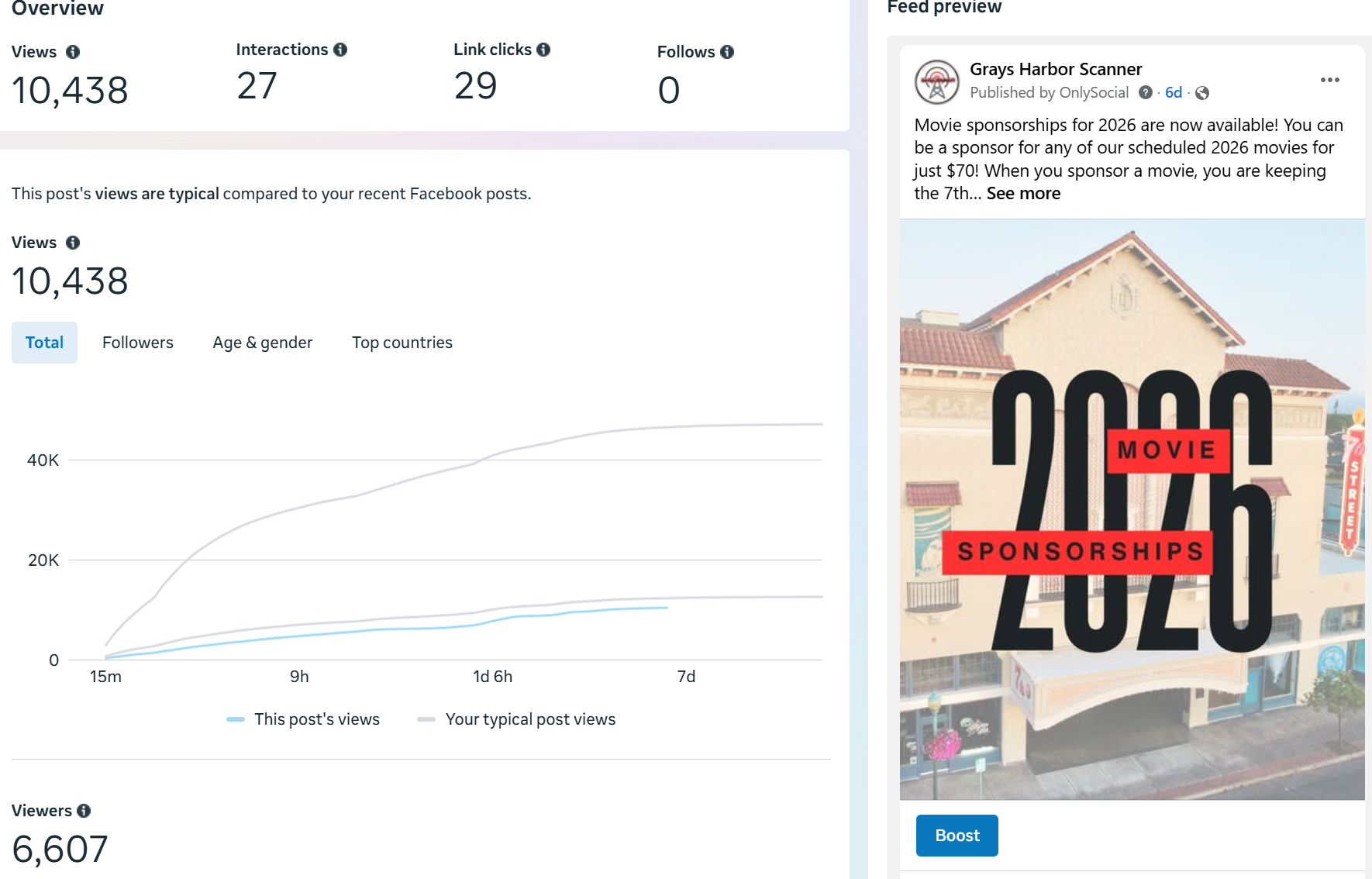 | Captured | Reach | Clicks | Reactions | Comments | Shares |