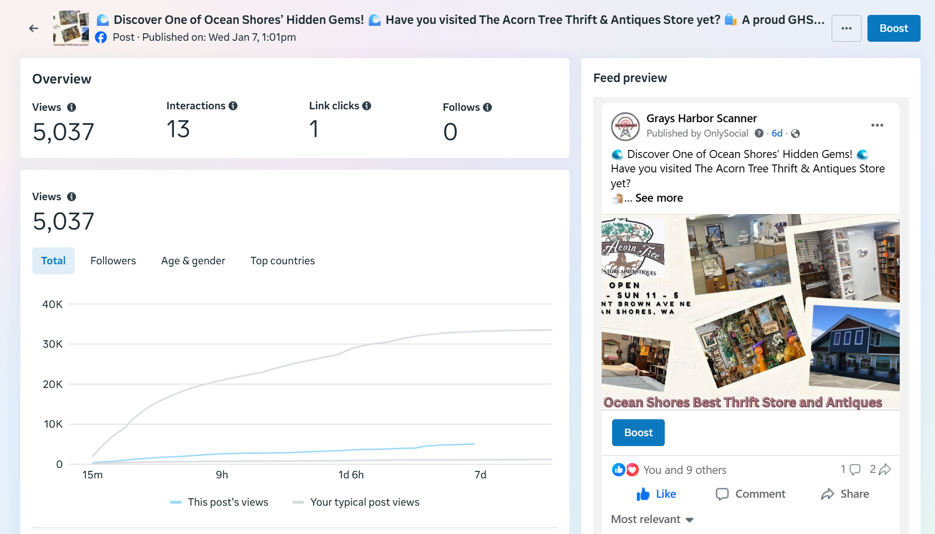 | Captured | Reach | Clicks | Reactions | Comments | Shares |