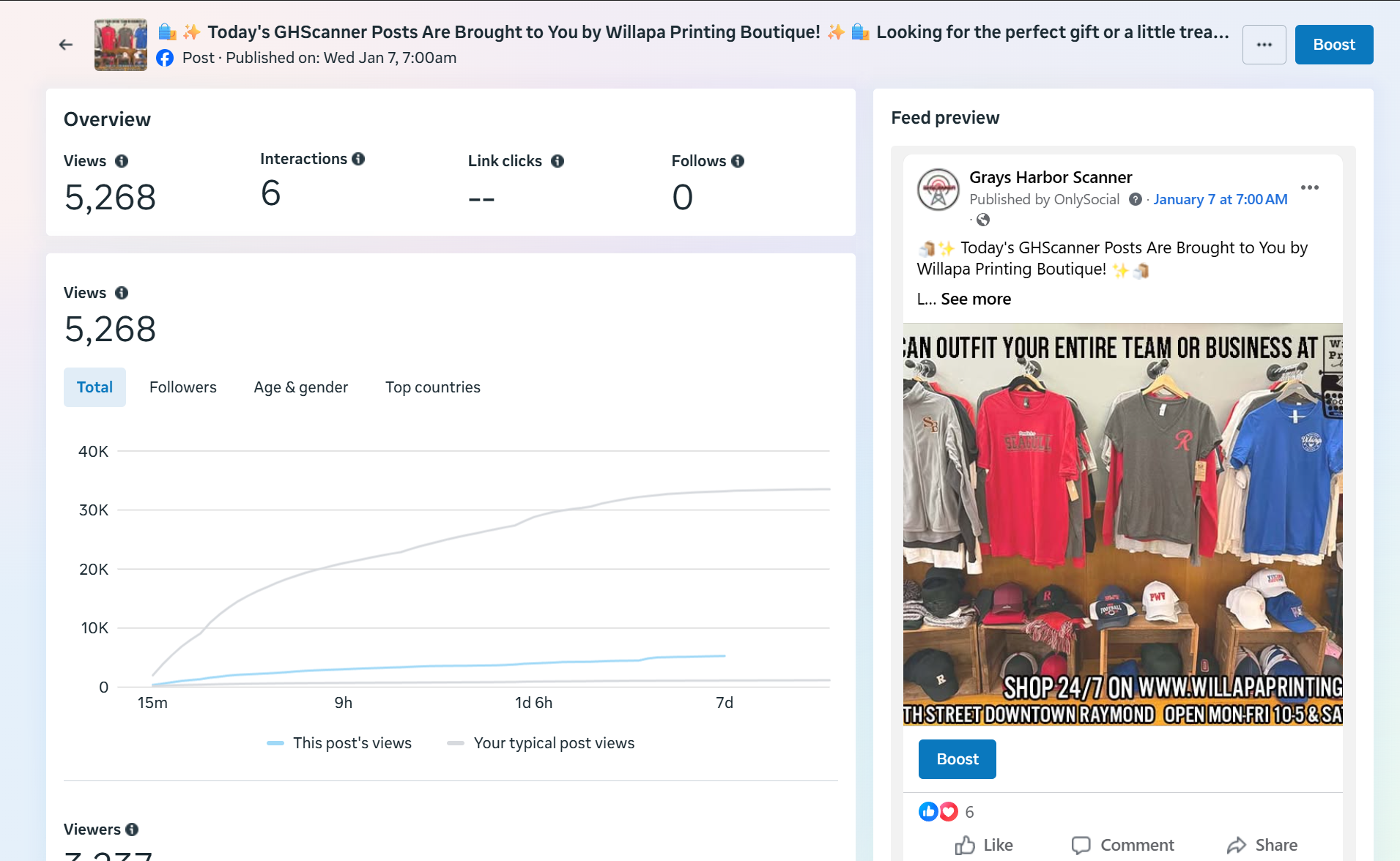 | Captured | Reach | Clicks | Reactions | Comments | Shares |
