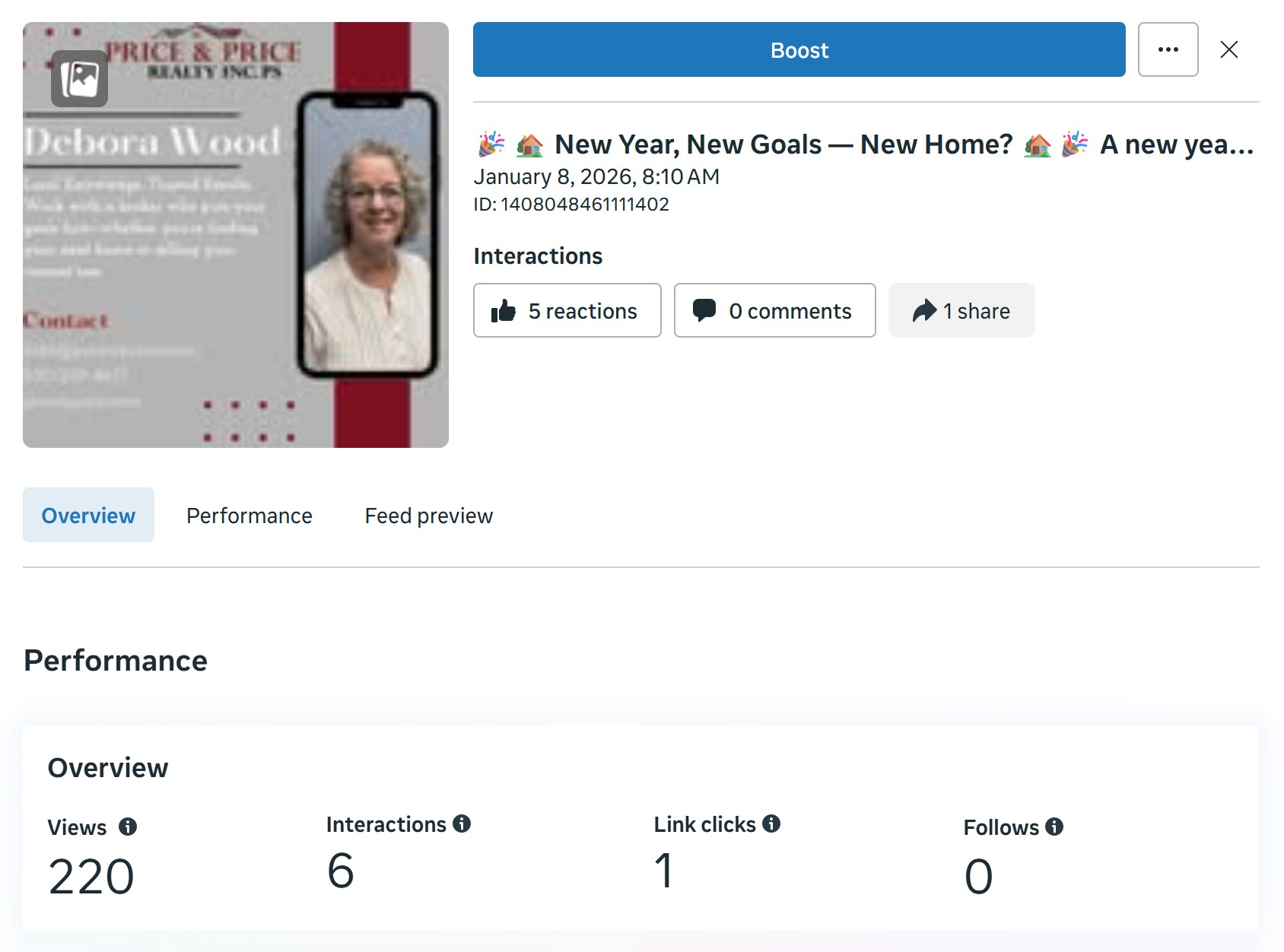 | Captured | Reach | Clicks | Reactions | Comments | Shares |
