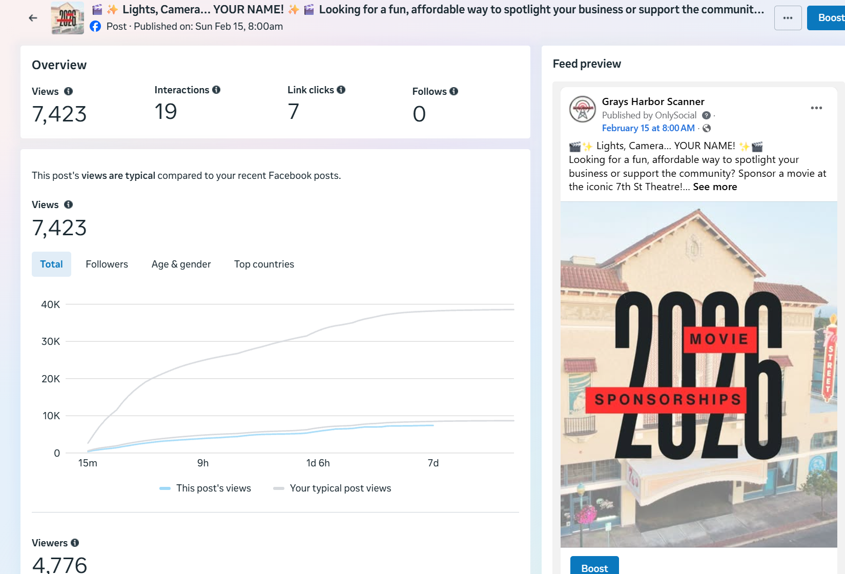| Captured | Reach | Clicks | Reactions | Comments | Shares |
