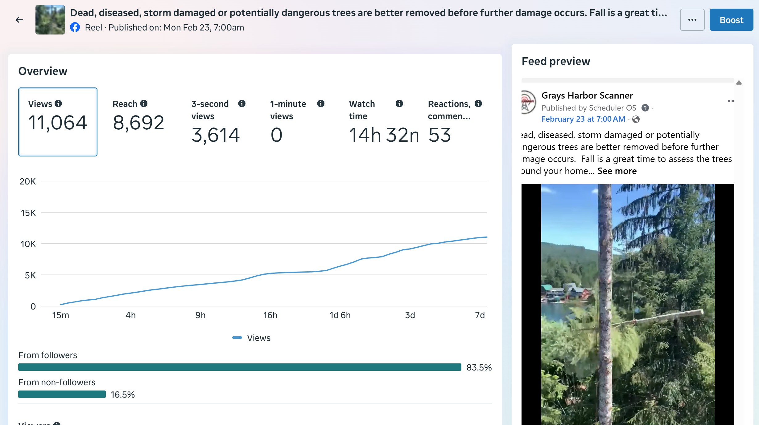 | Captured | Reach | Clicks | Reactions | Comments | Shares |